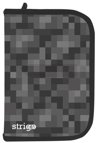Piórnik szkolny Strigo z dwiema klapkami z kolekcji Blocks w kolorze czarnym. Piórnik o standardowej wielkości, zamykany za pomoca wysokiej jakości suwaka. Posiada rozkładane, dwie klapki z miejscem na przybory szkolne i miejscem na tabliczkę mnożenia i plan lekcji. Piórnik wyposażony jest w liczne mocowania ułatwiające organizację przyborów w piórniku. Wykonany z wysokiej jakości materiału z wzmocnionymi szwami, które gwarantują długie użytkowanie.