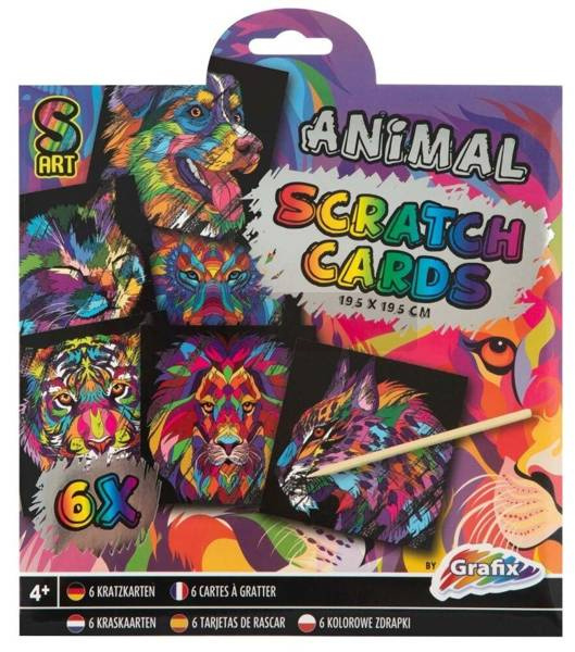 Zestaw 6 arkuszy do wydrapywanek Zwierzęta + rysik