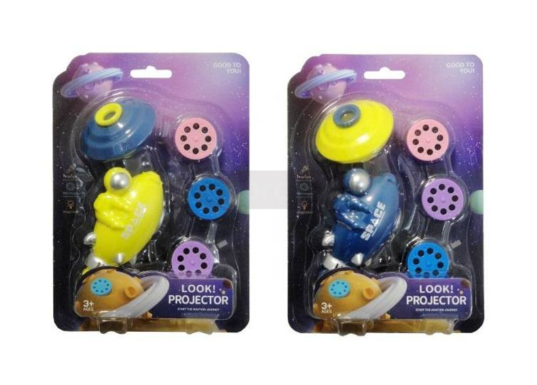 Zabawka projektor do wyświetlania. Zestaw posiada 3 okrągłych wkładów do wyświetlacza. Każdy wkład zawiera 8 zdjęć (są to motywy z dinozaurami, ze zwierzętami oraz z planetami). W zestawie: 3 x 8 zdjęć, projektor Zabawka działa na baretie typu AG13. Baterie są załączone do zabawki. Produkt występuje w kilku wersjach kolorystycznych, wybierany losowo. Cena dotyczy jednej sztuki. Podane wymiary są wymiarami opakowania. Zabawka zapakowana w kartonową podstawkę z przezroczystym kloszem.