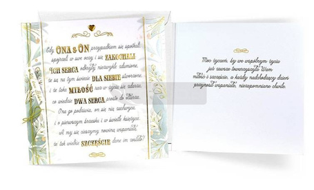 W środku każdej kartki znajdują się dobrane do okazji życzenia, a do kartki dołączona jest dopasowana koperta.