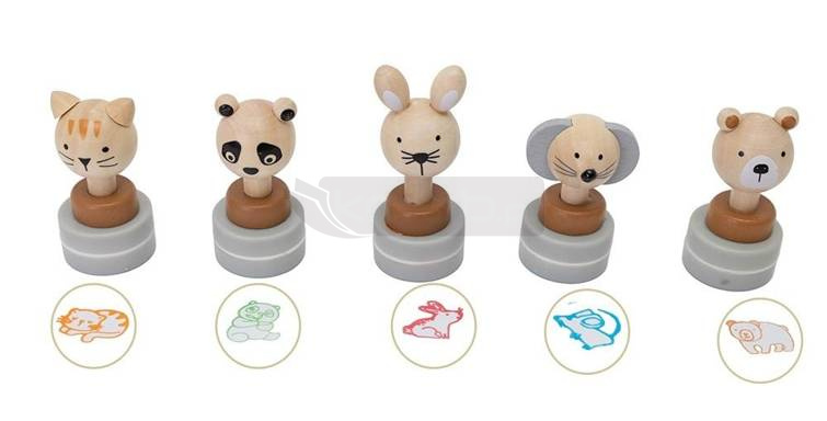 Drewniane pieczątki z tuszem - zwierzęta