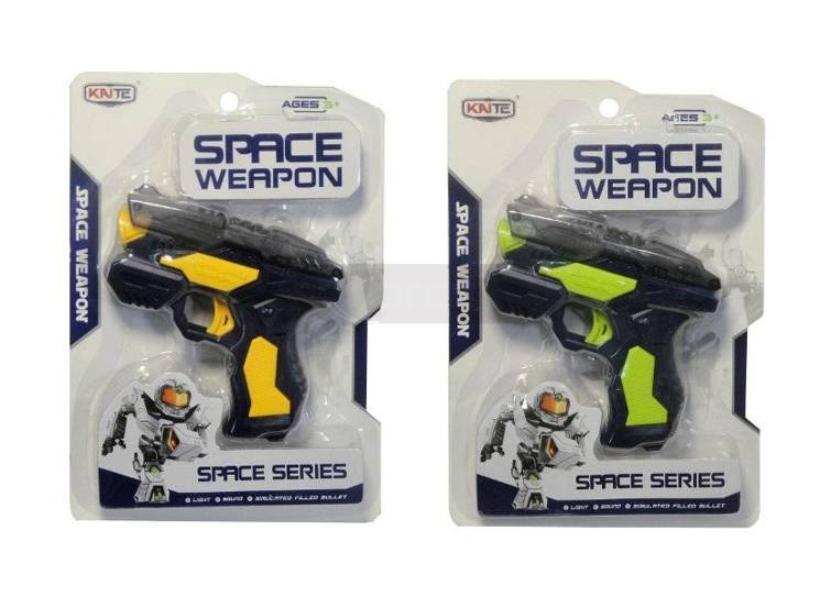 Plastikowy pistolet strzałki. Kiedy wciśniemy spust pistoletu produkt świeci kolorowym światełkiem oraz wydaje dźwięki. Podczas ładowania pistolet również wydaje dźwięki. Zabawka działa na baterie typu AAA. Baterie nie są załączone do zabawki. Produkt występuje w kilku wersjach kolorystycznych, wybierany losowo. Cena dotyczy jednej sztuki. Produkt dla dzieci od 3 lat. Zabawka zapakowana w kartonową podstawkę z przezroczystym kloszem. Podane wymiary są wymiarami opakowania.