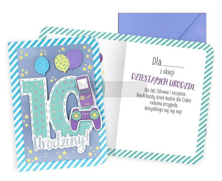 Kartka B6 z ozdobnej serii Dream Cards na Urodziny dziecięce - nieduża, ale robi wrażenie dzięki atrakcyjnej kolorystyce i ciekawym zdobieniom.