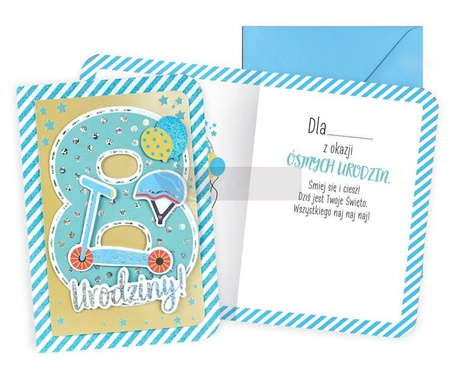 Kartka B6 z ozdobnej serii Dream Cards na Urodziny dziecięce - nieduża, ale robi wrażenie dzięki atrakcyjnej kolorystyce i ciekawym zdobieniom.