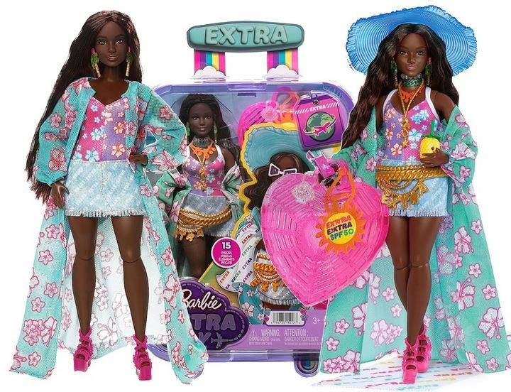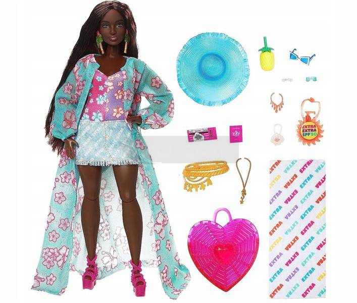 Lalki Barbie Extra Fly są gotowe na wakacje w modnych kreacjach z dodatkowym stylem! Do każdej lalki dołączone są akcesoria i elementy do stylizacji o tematyce podróżniczej, które stanowią ważny akcent. Lalka Barbie jest ubrana, by odkrywać świat w jej bajecznym stroju! Lalka Barbie idzie na plażę! Ta ruchoma lalka ma elastyczne ciało i jest gotowa na mnóstwo zabawy w słońcu Pokazuje swój stylowy plażowy look w tropikalnym kostiumie kąpielowym, dżinsowej spódnicy z dodatkowym motywem, pelerynie do ziemi i różowych sandałach na platformie Liczy się każdy szczegół! Lalka Barbie ma 15 akcesoriów, w tym tropikalny napój, za duży kapelusz plażowy, kolczyki z palmami i okulary przeciwsłoneczne, które zainspirują ją do wyrażania swojego stylu i zabawy ze stylizacją Niezbędne akcesoria podróżne poprawiają opowiadanie historii. Ta lalka o tematyce plażowej ma dużą plażową torbę w kształcie serca, zawieszkę na bagaż w kształcie muszli, paszport, bilet lotniczy i brelok do kluczy z filtrem przeciwsłonecznym Dzięki tak wielu zabawnym stylizacjom i elementom podróżniczym lalki Barbie Extra Fly to wspaniały prezent dla dzieci, które kochają modę i podróże. Świetny prezent dla fanów Barbie.