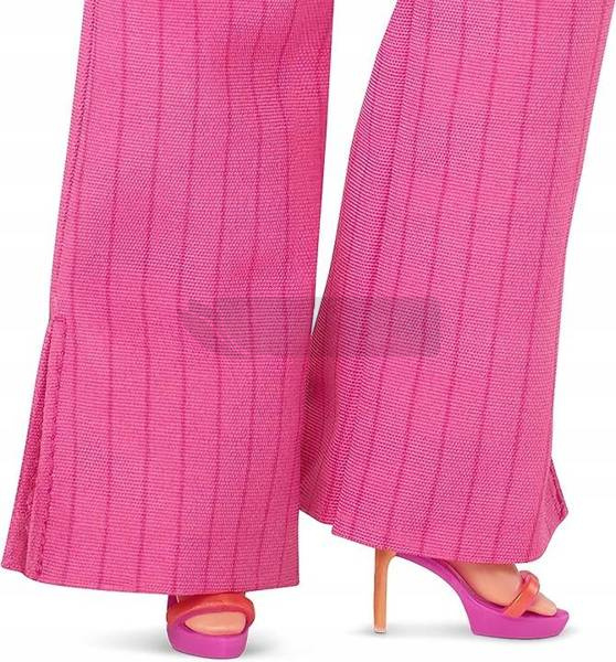 Witamy w świecie Barbie! Ta kolekcjonerska lalka Barbie® inspirowana postacią Glorii z filmu „Barbie” budzi podziw, a jej stylizacja robi wrażenie! Różowy garnitur, gęste loki i wielokolorowymi bucikami na platformie zachwycą każdego. Odkryj potęgę różu! Trzyczęściowy strój tej lalki Barbie wygląda łudząco podobnie do filmu. Szlachetny, ale wyrazisty – kolor różowy jeszcze nigdy nie był tak mocny! Satynowy blezer i pasująca bluzka są połączone z szczegółowymi spodniami w prążki – prawdziwe kieszenie i modne mankiety z rozcięciem. Między obszernymi lokami wyróżniają się duże złote kolczyki, a metalowe wysokie obcasy z paskami zapewniają nieco tęczy. Ta lalka upamiętniająca premierę filmu „Barbie” to doskonały prezent dla fanów i kolekcjonerów. Podstawka dla lalki w zestawie.