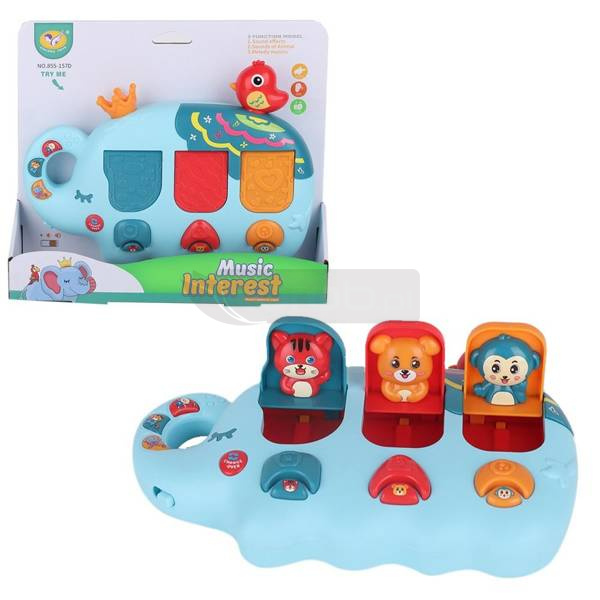 Zabawka posiada odgłosy zwierząt oraz melodyjki. Posiada ruchome elementy, które o zamknięciu lub otwarciu wydają dźwięki. Głośność dźwięku jest regulowana. Wymagane baterie - 3xAAA (dołączone).