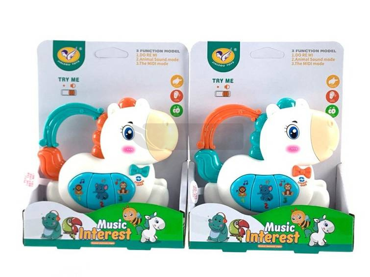 Zabawka występuje w dwóch wersjach kolorystycznych. Posiada efekty dźwiękowe: do, re, mi; odgłosy zwierząt. Możliwość ściszania lub zgłaśniania dźwięków Wymagane baterie - 2xAAA (dołączone).