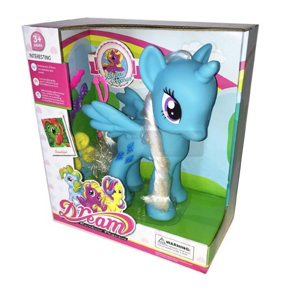 Kucyk w kolorze niebieskim, zestaw posiada akcesoria do czesania.