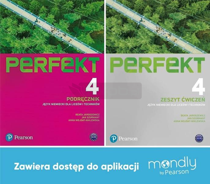 Perfekt 4. Język niemiecki. Komplet Podręcznik + Zeszyt ćwiczeń + dostęp Mondly Podręcznik Perfekt 4 skierowany jest do uczniów szkół średnich i techników. Dzięki interaktywnej wersji podręcznika z nagraniami audio i ćwiczeniami uczniowie mogą doskonalić sprawności językowe. Komplet składa się z podręcznika i zeszytu ćwiczeń Perfekt 4, który ułatwia naukę słownictwa oraz gramatyki, dzięki ciekawym i praktycznym zadaniom. W skład zestawu wchodzi kod dostępowy do platformy MondlyWORKS. Platforma MondlyWORKS: daje pełny dostęp premium do 41 języków za pośrednictwem aplikacji Mondly by Pearson, wykorzystuje najnowocześniejsze technologie, takie jak chatboty, rozpoznawanie mowy i AI, udostępnia dodatkowe ćwiczenia w trybie "Hands free", symulującym prawdziwe rozmowy z nativespeakerami, które rozwijają u uczniów umiejętność mówienia w obcym języku, dzięki elementom grywalizacji i dostępu do ogólnych rankingów, daje uczniom możliwość konkurowania ze znajomymi i podejmowania wyzwań, daje dostęp do modułów z ponad 40 tematami, które wzbogacą lekcje przeprowadzane w klasie, jest dostępna na wszystkich urządzeniach: komputerach, telefonach i tabletach oraz łatwo integruje się z istniejącym programem nauczania, wspiera uczniów potrzebujących dodatkowych zadań, które nie wymagają wcześniejszego przygotowania, a ich wyniki pojawiają się automatycznie w aplikacji, w prosty sposób monitoruje aktywność i postępy uczniów. Podręcznik - Perfekt 4 Zagadnienia z zakresu gramatyki, leksyki, tworzenia wypowiedzi ustnych i pisemnych nawiązują do życia codziennego młodych ludzi. Głównym celem podręcznika Perfekt 4 jest przygotowanie uczniów do swobodnego posługiwania się językiem niemieckim. Podręcznik posiada stałe elementy, które pomagają w nauce języka niemieckiego. Poprzez naukę słownictwa w sekcji Wort fr Wort i Deutsch im Gesprch uczniowie mogą sprawnie powtórzyć słownictwo z całego rozdziału. Wewnątrz książki znajduje się kod, który zapewnia interaktywne zajęcia, nagrania audio i podsumowania ćwiczeń. Zeszyt ćwiczeń - Perfekt 4 Zeszyt ćwiczeń Perfekt 4 przygotuje uczniów do sprawnego posługiwania się językiem niemieckim poprzez ciekawą tematykę, trening czterech sprawności językowych oraz ćwiczenia zintegrowane z podręcznikiem Perfekt 4. Przykładowe zadania pisemne, które zawierają wskazówki jak sprawnie tworzyć autorskie teksty oraz formy pisemne obowiązkowe na egzaminie maturalnym. Ćwiczenia posiadają zadania maturalne Deutsch effektiv, dodatkowe ćwiczenia gramatyczne Grammatik extra oraz minirozmówki przydatne w podróży Wortschatz zum Mitnehmen. Ćwiczeniówka Perfekt 4 zawiera kody QR do filmów VOX POP oraz kod dostępu do aktywnej wersji zeszytu.