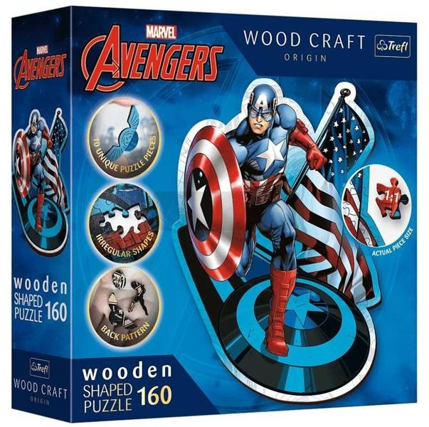 Puzzle drewniane Nieustraszony Kapitan Ameryka to wyjątkowa propozycja dla miłośników Avengers. Te klimatyczne puzzle składają się z 160 elementów, w tym z 10 unikatowych figurek puzzlowych nawiązujących do świata Marvela. Układanka została wykonana z drewna, a opakowanie z przyjaznej dla środowiska tektury.