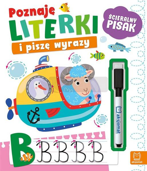 "Poznaję literki i piszę wyrazy" to książka wielokrotnego użytku, wydana na zmywalnym papierze, z załączonym ścieralnym pisakiem. Dzieci znajdą tu szlaczki i zadania zachęcające do poznawania liter oraz proste wyrazy. Książka ze ścieralnym pisakiem w niewymuszony sposób skłania dzieci do wielokrotnych powtórzeń, co sprawia, że bez wysiłku uczą się liter i rozwijają sprawność manualną.