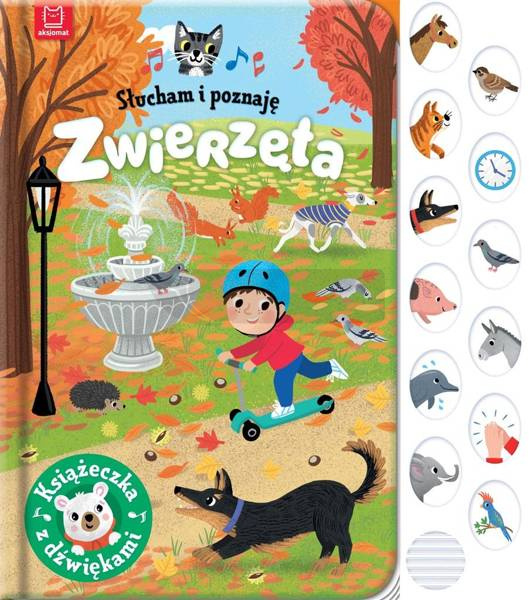 Książka dla małych miłośników zwierząt, a w niej bogate ilustracje oraz wierszowane historyjki o ulubionych zwierzakach. Dodatkową atrakcją są dołączone dźwięki. Posłuchaj, jak brzmią: koń, kot, pies, świnka, delfin, słoń, papuga, osioł oraz inne zwierzęta i przedmioty pokazane w książce.