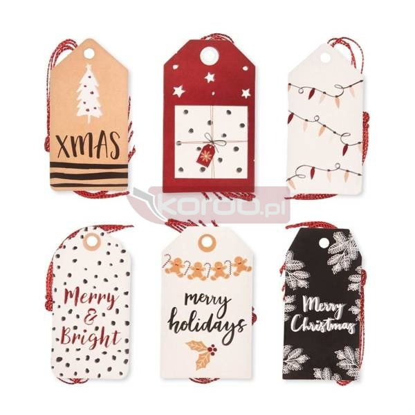 Zestaw tagów do prezentów zawiera 6 uroczych, świątecznych wzorów. Znajdą one zastosowanie nie tylko przy pakowaniu prezentów, ale nadadzą się również do oryginalnych kartek świątecznych i projektów scrapbookingowych.
