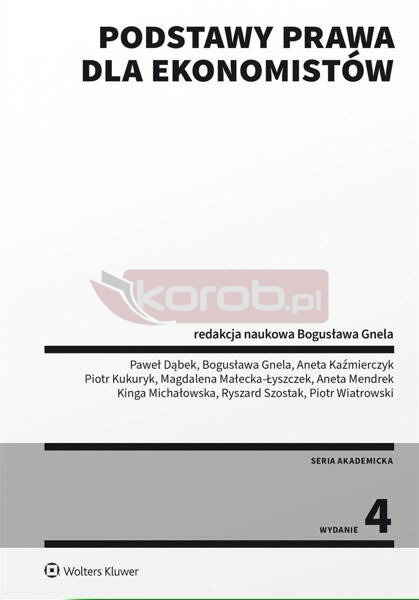 W podręczniku w sposób zwięzły i kompleksowy zaprezentowano podstawowe wiadomości z zakresu poszczególnych gałęzi lub działów prawa niezbędne każdemu ekonomiście. Przedstawiono w nim zagadnienia z zakresu teorii prawa oraz elementy prawa konstytucyjnego, administracyjnego, finansowego, karnego, cywilnego, a także prawa pracy, ubezpieczeń społecznych i prawa prywatnego międzynarodowego. Czytelnik zdobędzie ogólną wiedzę o polskim prawie, niezbędną do zdania egzaminu z podstaw prawa, przydatną również w życiu codziennym i podczas wykonywania zawodu ekonomisty. Opracowanie przeznaczone jest przede wszystkim dla studentów ekonomicznych kierunków studiów. Może jednak być również przydatne słuchaczom innych kierunków z zakresu nauk społecznych. Publikacja została opracowana przez profesorów oraz adiunktów zatrudnionych w Katedrze Prawa Cywilnego i Gospodarczego oraz w Katedrze Prawa Administracyjnego i Zamówień Publicznych na Wydziale Finansów i Prawa Uniwersytetu Ekonomicznego w Krakowie. Na tym Wydziale pracownicy wymienionych Katedr prowadzą również wykłady dla studentów kierunku prawo. Autorzy podręcznika w zdecydowanej większości mają także status sędziego, adwokata lub radcy prawnego.