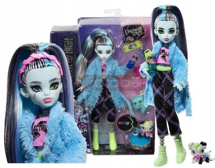 Lalki Monster High™ Creepover Party™ mają szczegółowy strój i akcesoria do spania nawiązujące do ich unikalnego Scarytage, a także figurkę zwierzaka! Super miękka bluza z kapturem lalki Frankie Stein™ jest elektryzująco przytulna! Noszą go na różowej koszulce z graficznym nadrukiem i przyciętych legginsach w kratę. Ten potwór ma groźny wygląd dzięki eleganckiemu kucykowi z niebieskimi smugami, asymetrycznym zielonym butom i opasce na głowę z motywem błyskawicy. Porozmawiajcie o wygodzie stworzenia! Ich pies Watzie™ ma własne legowisko, w którym można się zwinąć, podczas gdy jego błyskawicowe skrzydła ładują się! Czas na zabawy i bitwy na poduszki! W zestawie znajdują się wszystkie niezbędne akcesoria do gry Creepover: miękka poduszka, napój w butelkach, telefon iCoffin, przenośna gra wideo i głośnik typu boo-tooth. Pozuj lalkę Frankie Stein™ jak wielką gwiazdę! Elastyczność tułowia, łokci, nadgarstków i kolan ułatwia zabawę modą i opowiadanie historii. Każda noc ghula potrzebuje kilku dziwacznych przyjaciół! Zapoznaj się z kolekcją Monster High™ Creepover Party™, aby zapewnić sobie dodatkową zabawę z całą upiorną drużyną. Świetny prezent dla fanów Monster High.