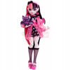 Wygląd lalki Draculaura osiąga kolejny poziom dzięki przerażająco eleganckiej pelerynie i wspaniałym akcesoriom, takim jak plecak, smartfon, przekąski i krem przeciwsłoneczny o współczynniku ochrony przeciwsłonecznej 500.