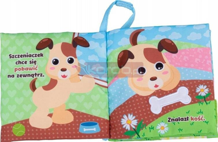 Razem ze szczeniaczkiem przeżyj dzień pełen przygód! Na kolorowych stronach kryją się urocze obrazki ilustrujące historyjkę na temat pieska. Zróżnicowane faktury materiałów, piszczałka