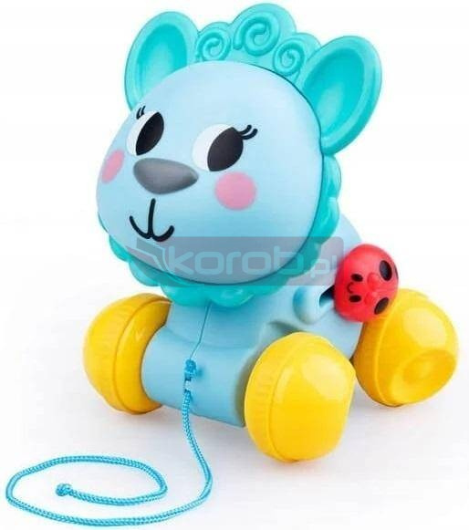 Lama na sznureczku to wymarzony kompan do zabawy. Kiedy maluch prowadzi rączką zwierzaka, ten jedzie, zabawnie kołysząc przy tym głową na boki. Lama wyposażona jest w cztery kółeczka o nieregularnym kształcie, co zapewnia ciekawy efekt wizualny. Dodatkowo, można je rozpędzić, aby postawiony na podłodze zwierzak pojechał samodzielnie do przodu. Na boku lamy siedzi biedroneczka, która przy przesuwaniu wydaje terkoczący odgłos