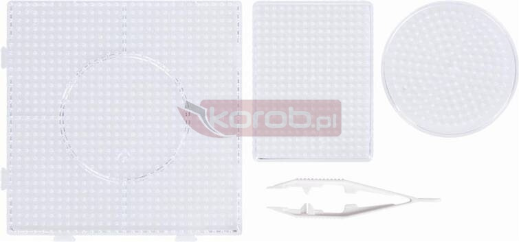 Kwadrat, prostokąt, kółko, pęseta do koralików.