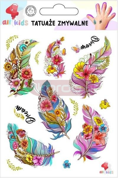 Tatuaże zmywalne dla dzieci Pióra i kwiaty