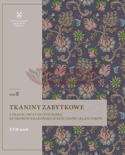 Zamiłowanie do rzemiosła artystycznego w kulturze polskiej odzwierciedlają bogate zbiory zabytków troskliwie przechowywanych w skarbcach kościołów i klasztorów. Analiza stanu zgromadzonych zasobów sztuki kościelnej wskazuje na przewagę tekstylnych paramentów liturgicznych pośród innych obiektów sztuki użytkowej. Szaty wykorzystywane w liturgii wykonywano z cennych tkanin stanowiących przedmiot fundacji, importu czy wtórnego wykorzystania. Poznanie zbiorów sztuki sakralnej pozwala odtworzyć historię przemian stylowych, zachodzących we wzornictwie tkanin, z określeniem wpływów kulturowych odgrywających dużą rolę w formułowaniu stylów, kierunków artystycznych decydujących o zarysowaniu ram czasowych czy określeniu atrybucji ufundowanych paramentów. Przedmiotem katalogu jest naukowe opracowanie materiału zabytkowego obejmującego tkaniny z okresu od XV do XVII wieku ze zbiorów krakowskich kościołów i klasztorów. Drugi tom poświęcono zabytkom tekstylnym z czasów XVII stulecia. Zasadniczym celem tej publikacji jest identyfikacja i uporządkowanie znaczącego materiału tekstyliów rozproszonych w kościołach i klasztorach krakowskich. Dokładne omówienie historii, kompozycji, techniki wykonania uzupełnione stanem badań stanowi porównawczą bazę danych opracowaną na podstawie materiału na co dzień trudno dostępnego, zamkniętego w skarbcach kościelnych. Katalog przyczyni się zapewne do uzupełnienia naukowych usta - leń powstałych na podstawie kolekcji muzealnych, służąc kompleksowemu omówieniu historii tkanin od XV do końca XVII stulecia