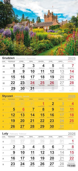 Główka pełnokolorowa, okienko przesuwane, nazwy miesięcy i tygodni w wersjach językowych.