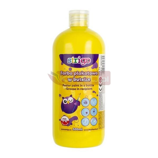 Farba plakatowa w butelce 500ml żółta STRIGO