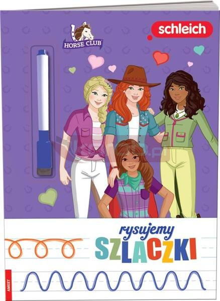 Przyjaciółki z Horse Club zapraszają do krainy szlaczków. W towarzystwie swoich ulubionych bohaterek małe miłośniczki koni będą ćwiczyć kreślenie szlaczków i rysowanie różnorodnych kształtów. Będzie to dla nich nie tylko wspaniała zabawa, ale też doskonały trening umiejętności manualnych przygotowujący do nauki pisania liter i cyfr. Dzięki specjalnym stronom i ścieralnemu mazakowi w każdej chwili dzieci mogą zacząć przygodę ze szlaczkami od nowa.
