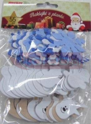 Naklejki z pianki nazwa: renifery, bałwany i śnieżynki ilość: 55 szt