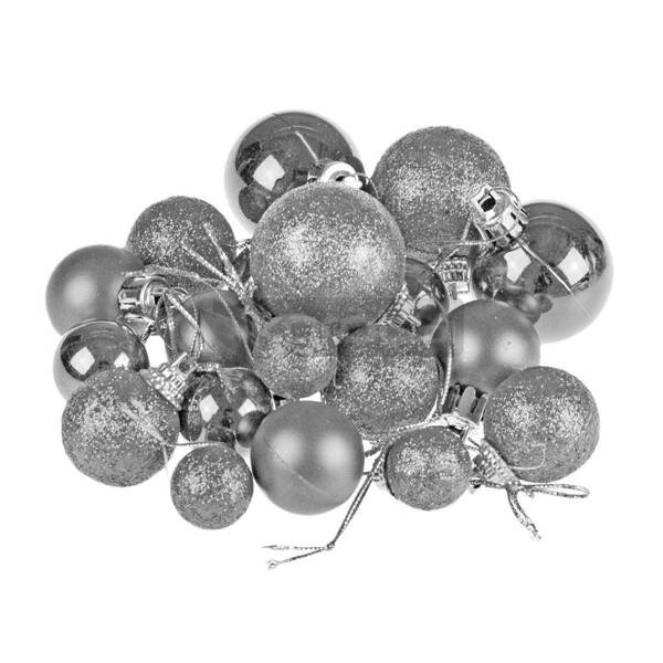 Komplet ozdób choinkowych o średnicy 2-4 cm. w kolorze srebrnym.