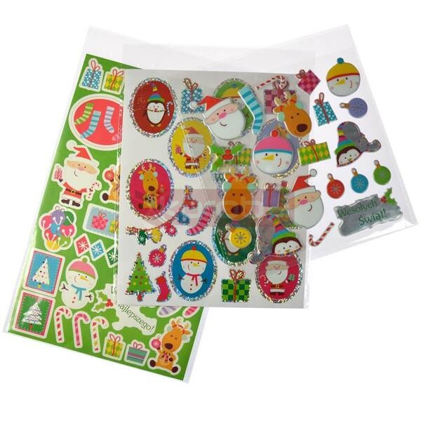 Zestaw 3 arkuszy w różnych formatach z naklejkami papierowymi, holograficznymi i wypukłymi. Największy arkusz po złożeniu ma rozmiar: 16x24,5 cm.