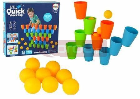 Układanka Kubeczki Gra 3 w 1 44 Elementy Układanka Kubeczki 3 w 1 to fantastyczna zabawa dla dzieci. W zestawie znajdziesz 44 elementy: 12 niebieskich, 12 pomarańczowych i 12 zielonych kubeczków, które można łączyć tworząc budowle. Dodatkowo, zestaw zawiera 8 piłeczek do zabawy w pingponga, dzięki któremu można ćwiczyć swoją celność. Kubeczki mają specjalne wyżłobienia, dzięki którym można je dowolnie łączyć, co rozwija kreatywność i koordynację u dzieci. Wymiary kubeczka to 8 cm x 6,5 cm, a średnica piłeczki wynosi 3,5 cm. Ta układanka to nie tylko świetna zabawa, ale także doskonały sposób na rozwijanie zdolności manualnych i logicznego myślenia u dzieci. Zamów teraz i daj swojemu dziecku możliwość tworzenia i odkrywania przy pomocy Kubeczków 3 w 1! Wymiary opakowania: 26 cm x 26 cm x 7 cm Posiada certyfikat CE, ponadto jest zgodny z normą EN71. Zabawka przeznaczona jest dla dzieci powyżej 3 roku życia.