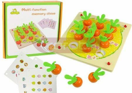 Gra Memory Marchewki Drewniana Zapraszamy do magicznego świata zabawy z drewnianym Memory - urokliwą i edukacyjną grą dla małych odkrywców! To doskonały sposób na rozwijanie pamięci i umiejętności logicznego myślenia u dzieci w przyjemny i kreatywny sposób. Zaprojektowana z dbałością o każdy detal, zabawa ta wciąga zarówno maluchy, jak i starszych użytkowników, zapewniając godziny radości i skupienia. Głównym elementem tej gry jest solidna, drewniana podstawka z okrągłymi otworami, w których umieszczamy 12 uroczych pionków w kształcie kolorowych marchewek. Zadaniem graczy jest znalezienie par identycznych wzorów. W zestawie znajduje się 7 dwustronnych plansz z różnymi uroczymi wzorami do odgadywania. Pozwala to maluchom na wybór oraz różnorodność. To wyzwanie dla młodych umysłów, które uczą się odkrywać i łączyć pasujące pary. Wymiary memory wynoszą: 22,5 cm x 22,5 cm x 2 cm, co sprawia, że jest to idealna gra zarówno do zabawy w domu, jak i podczas podróży. Dzięki solidnemu wykonaniu, jest ona trwała i wytrzymała, zapewniając wiele godzin wspaniałej zabawy i radości. Wprowadź swoje dziecko w świat logicznego myślenia i przyjemnej rywalizacji z tą grą. Rozwijaj umiejętności i twórz wspomnienia, które pozostaną na długo w sercu Twojego dziecka! Wymiary memory: 22,5 cm x 22,5 cm x 2 cm Wymiary opakowania: 5 cm x 4,5 cm x 23 cm Posiada certyfikat CE, ponadto jest zgodny z normą EN71. Zabawka przeznaczona jest dla dzieci powyżej 3 roku życia.