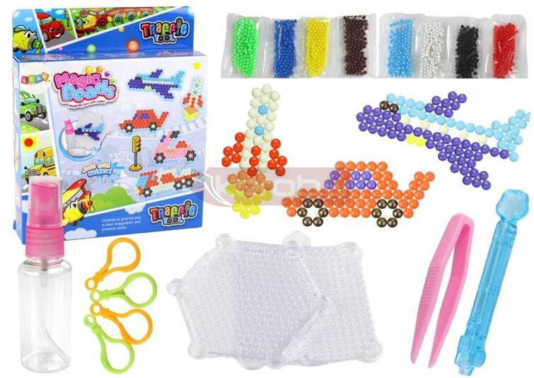 Zestaw Koralików Wodnych DIY Magiczne Koraliki 8 Kolorów Środki Transportu Oferujemy fascynujący zestaw koralików DIY, idealny dla młodych artystów. W zestawie znajdziesz koraliki w 8 różnych kolorach, w tym żółte, pomarańczowe, różowe, czerwone, czarne, białe, granatowe, niebieskie. To świetny sposób na rozwijanie wyobraźni i zdolności manualnych. Dodatkowo zestaw zawiera dwie podstawki w kształcie kwadratu i sześciokąta, które umożliwiają tworzenie różnorodnych wzorów i kompozycji. Butelka na wodę pozwala na łatwe moczenie koralików, co umożliwia ich sklejanie. Dzieci mogą tworzyć zawieszki i wiele innych wyjątkowych ozdób. To także świetna okazja do rozwijania kreatywności i spędzania czasu twórczo. Zachęć swoje dziecko do eksperymentowania z różnymi kolorami i wzorami, dzięki czemu będzie mogło wyrazić swoją wyjątkową osobowość poprzez tworzenie własnych dzieł sztuki. Ten zestaw koralików DIY to świetny prezent dla małych artystów i twórczych dusz. Sposób używania: Ułóż koraliki na podstawie w wybrany przez siebie wzór, a gdy układ jest już gotowy - spryskaj go wodą z odległości ok. 10cm. Pamiętaj - bez odpowiedniej ilości wody - koraliki nie skleją się wystarczająco. Możesz przechylić podkładkę i w przypadku nadmiaru wody - wchłonąć ją np. ręcznikiem papierowym. Odczekaj aż koraliki połączą się w jedną całość - odstaw je na co najmniej godzinę, a dopóki koraliki całkowicie nie wyschną - staraj się ich nie dotykać. Następnie delikatnie wyjmij układankę z podstawki i gotowe ! Zawartość zestawu : - koraliki w 8 różnych kolorach - podkładka kwadratowa - podkładka sześciokątna - pęseta - aplikator - spryskiwacz - 4 zawieszki - książeczka z przykładowymi wzorami Wymiary opakowania : 22 cm x 19 cm x 4 cm Posiada certyfikat CE, ponadto jest zgodny z normą EN71. Zabawka przeznaczona jest dla dzieci powyżej 5 roku życia.