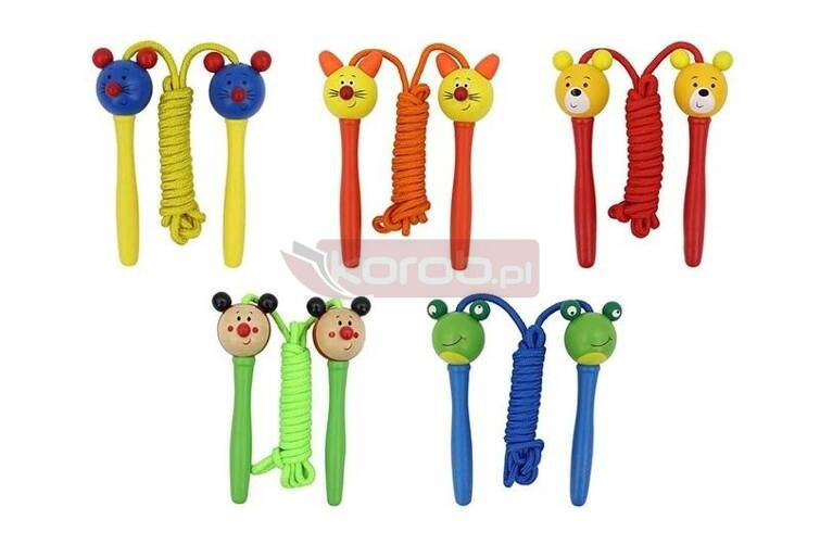Sznurek: pleciony, nylonowy, grubość 5 mm., Drewniane rączki, długość skakanki: 210 cm., Długość rączki: 16 cm., Wym. Opk: 20 x 16,5 x 25 cm., 3+
