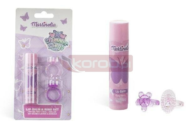 Zestaw kosmetyków zawiera 1 balsam do ust i 2 pierścionki.
