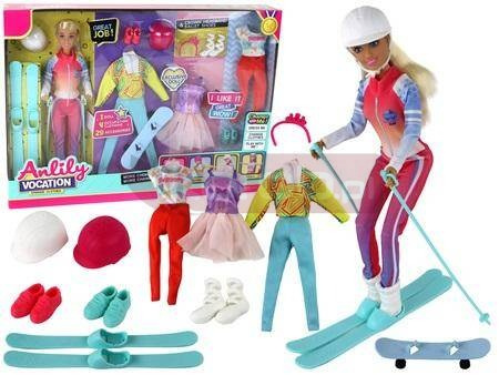Lalka Dla Dzieci Anlily 4 Sporty Narty Akcesoria Lalka Anlily Sport to wspaniała towarzyszka zabaw, zapewniająca dzieciom mnóstwo kreatywnej rozrywki. Ta urocza lalka ma niebieskie oczy, długie blond włosy do czesania i wymiary 30 cm x 4 cm x 6 cm. W zestawie znajduje się wiele strojów i akcesoriów, które pozwalają dzieciom bawić się w różne role i odkrywać różne dziedziny sportu. Lalka jest ubrana w narciarski strój z białym kaskiem, białymi butami zimowymi, nartami i kijkami. Jednak to jeszcze nie wszystko! W zestawie znajdziesz także kostium baletnicy (fioletowy kostium z różowym tiulowym dołem, różowa opaska na włosy i białe baletki), strój do jazdy na deskorolce (niebieska deskorolka, żółta bluzka z długim rękawem, niebieskie spodnie, różowy kask i różowe sportowe buty) oraz strój do jogi (wygodne pomarańczowe spodnie, kolorowa bluzka z krótkim rękawem i miętowe sportowe buty). Ta lalka ma ruchome i zginane kończyny, co pozwala na realistyczne poruszanie się i odtwarzanie różnych scenek. Wymiary opakowania wynoszą 44 cm x 32 cm x 6 cm. To idealna zabawka, która rozwija wyobraźnię i kreatywność dziecka, zachęcając je do eksplorowania różnych pasji i zainteresowań. Elementy zestawu: - lalka Anlily - strój narciarski, narty oraz kijki - strój baletnicy - strój do jogi - strój na deskorolkę, deskorolka Wymiary lalki: 30 cm x 4 cm x 6 cm Wymiary opakowania: 44 cm x 32 cm x 6 cm Posiada certyfikat CE, ponadto jest zgodny z normą EN71. Zabawka przeznaczona jest dla dzieci powyżej 3 roku życia.