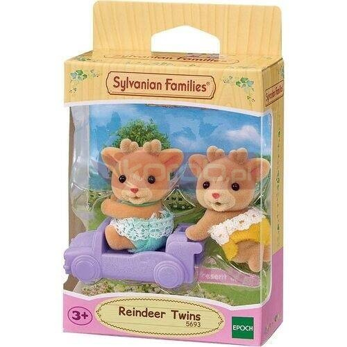 Renifery Sylvanian Families Ollie i Ginger to bliźnięta. Ollie uwielbia ciasteczka i jadłby je najchętniej codziennie. Ginger lubi pakować prezenty. Gdy dostaje zabawkę albo słodycze, pakuje je do ślicznej torebki. Uwielbia obdarowywać innych i cieszy się, gdy słyszy słowo "Dziękuję". Oprócz dwóch figurek zestaw zawiera mały samochód, którym może się zabrać jeden renifer. Samochód można łączyć z innymi pojazdami z zestawów "Bliźnięta". Bliźniaki renifery Sylvanian Families mają ok. 4 cm, produkt jest przeznaczony dla dzieci od trzeciego roku życia.