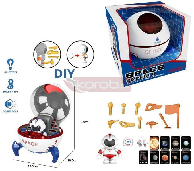 Astronauta w kapsule z akcesoriami
