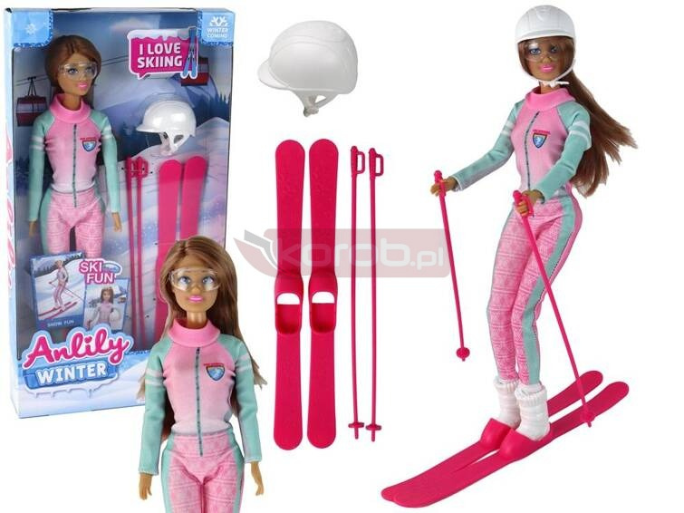 Lalka Anlily Narciarka Zestaw Narciarski Narty Lalka Anlily jest urocza i przypomina prawdziwą narciarkę. Ma długie, brązowe włosy, które pięknie opadają na jej plecy. Na głowie znajduje się biały kask narciarski, który idealnie chroni jej głowę podczas jazdy na nartach. Pod kaskiem nosi kolorowe gogle, które nadają jej uroku i dodają jej sportowego wyglądu. Lalka jest ubrana w kombinezon narciarski, który jest głównie różowy z dodatkowymi elementami w kontrastowym kolorze zielonym. Kombinezon jest odpowiednio dopasowany do jej ciała i wygląda bardzo stylowo. Na nogach ma białe buty narciarskie, które są idealnie dopasowane do jej zestawu narciarskiego. W zestawie z lalką znajdują się również różowe narty i dwa kijki narciarskie w kolorze różowym. Te dodatki pozwalają lalce wcielić się w rolę prawdziwej narciarki i cieszyć się zimowymi przygodami na stoku. Ta lalka zabawka jest idealna dla dzieci, które uwielbiają sporty zimowe i marzą o tym, żeby być jak prawdziwi narciarze. Jej szczegółowy strój i akcesoria sprawiają, że jest nie tylko wspaniałą zabawką do zabawy, ale także piękną ozdobą pokoju dziecka. Zawartość zestawu : - lalka Anlily - kask -gogle -narty -kijki - kombinezon - buty -oryginalne opakowanie Wymiary lalki : 31 cm x 7 cm Wymiary nart : 20 cm x 2,5 cm Wymiary kijków : 19 cm x 1 cm Wymiary opakowania : 32 cm x 17 cm x 5 cm Posiada certyfikat CE, ponadto jest zgodny z normą EN71. Zabawka przeznaczona jest dla dzieci powyżej 3 roku życia.