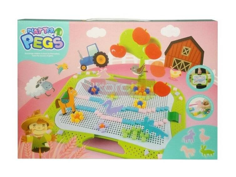 Kolorowa mozaika do układania. Rozbudź wyobraźnię swoich dzieci, spraw aby tworzyły unikalne obrazy. Pomogą im w tym kolorowe wpinki w różnych kształtach, figurki zwierzątek, drzewka, jabłek, a także ażurowa tablica. Za pomocą wpinki dzieci mogą tworzyć także proste zadania matematyczne.#&Produkt zapakowany w kartonowe opakowanie. #&Podane wymiary są wymiarami opakowania.
