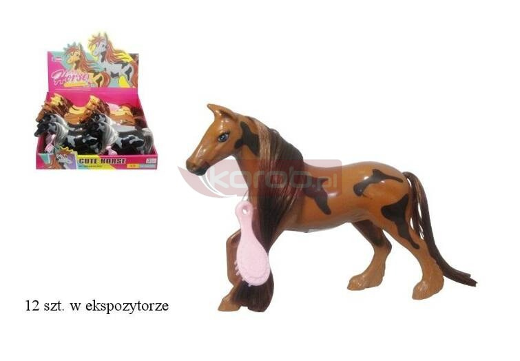Plastikowy konik dla lalki. W zestawie znajduje się również grzebień do czesania pięknej grzywy konia oraz jego ogona.#&Produkt występuje w kilku wersjach kolorystycznych, wybierany losowo. Cena dotyczy jednej sztuki. #&Produkt dla dzieci powyżej 3 lat.#&