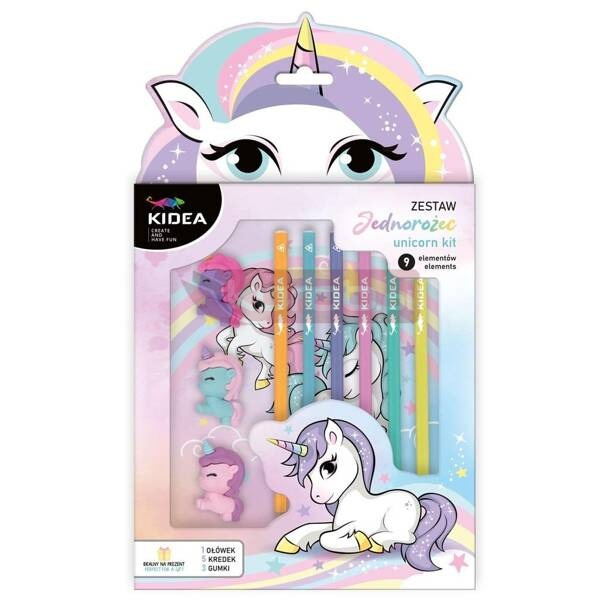 Zestaw ołówek, kredki i gumki, 9 elementów Unicorn Kidea.