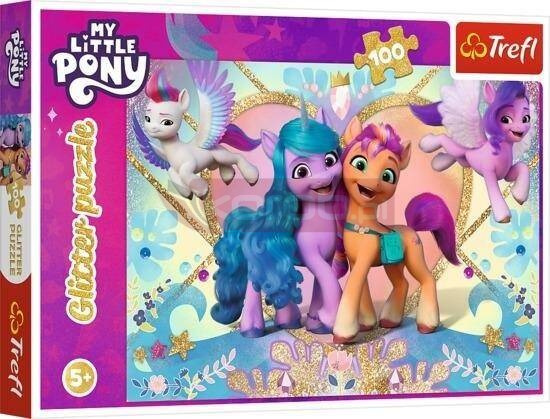 Puzzle Glitter My Little Pony Błyszczące kucyki składające się ze 100 elementów, zostały zaprojektowane specjalnie z myślą o fanach Kucyków Pony. Układanka została pokryta delikatnym, złotym brokatem, który sprawia, że zarówno opakowanie, jak i poszczególne elementy pięknie się mienią i sprawiają niesamowite wrażenie. Puzzle będą wspaniałą, błyszczącą ozdobą dziecięcego pokoju.