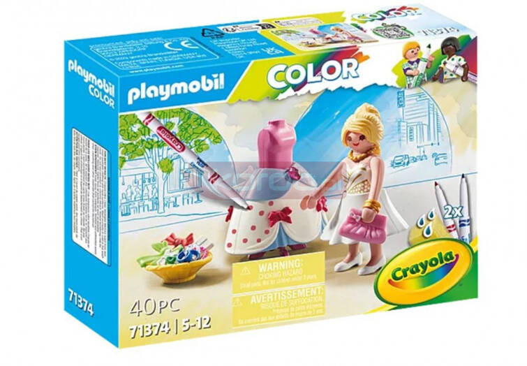 Zabawa kolorami z PLAYMOBIL Color! Stwórz piękne stroje wieczorowe i projektuj kolorowe sukienki i spódnice za pomocą dołączonych pisaków. Kolory są łatwo zmywalne wodą, dla niekończącej się zabawy.