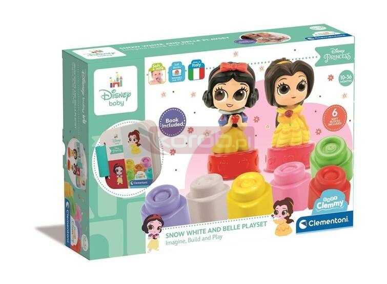 Bogaty zestaw Clemmy z najsłynniejszymi postaciami z Disney Księżniczki oraz ich przygody zawarte w kolorowej książeczce pełnej ilustracji. Sześć miękkich klocków Clemmy i ukochane postaci, gwarantujące w pełni bezpieczną zabawę i rozwój sprawności manualnej. Książeczka z kartonowymi, ilustrowanymi stronicami rozbudza dziecięcą wyobraźnię i pomysłowość.Wesołe kolory stymulują percepcję wzrokową, koncentrację i spostrzegawczość.