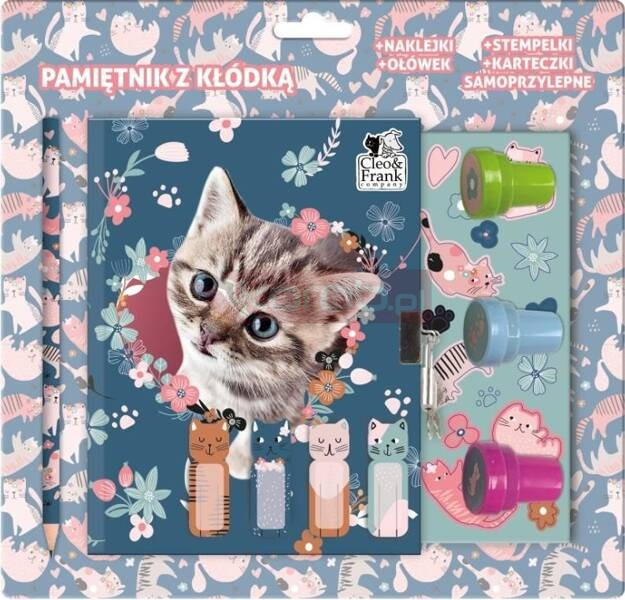 Pamiętnik z kłódką i stempelkami + zestaw przyborów Cleo i Frank Kot 41 DERFORM