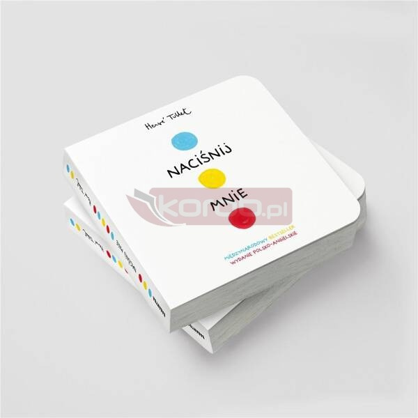 Kilka milionów egzemplarzy sprzedanych na całym świecie! Edycja dwujęzyczna: polsko-angielska! NACIŚNIJ MNIE szybko stała się międzynarodowym hitem. Interaktywna, kreatywna, edukacyjna - zachęca dzieci oraz dorosłych do wspólnej zabawy i nauki. To książka, którą trzeba przekręcać, na którą trzeba dmuchać, której trzeba klaskać... NACIŚNIJ MNIE została zaliczona do 10 najlepszych książek dla dzieci wg Amazon oraz do 11 najlepszych książek przez opiniotwórczy blog Huffington Post. Nagroda Główna w kategorii Kultura w konkursie Świat Przyjazny Dziecku zorganizowanym przez Komitet Ochrony Praw Dziecka. Laureat plebiscytu czytelników miesięcznika "Dziecko" (AGORA) - NAJLEPSZY PRODUKT ROKU 2013 - w kategorii "Najlepsza książka dla dzieci". Edycja KARTONIKOWA wszystkie strony z twardego kartonu. Wydanie dwujęzczyne: polsko-angielskie.