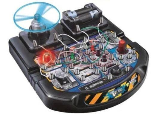 Łącz obwody i odkryj fascynujący świat elektryzujących doświadczeń! To duże, elektroniczne laboratorium daje możliwość wypróbowania różnych eksperymentów, np. latającego wentylatora. Wypróbuj różne kolejności łączenia kabelków, opisane w instrukcji obsługi, i sprawdź jaką reakcję urządzenia wywołasz.